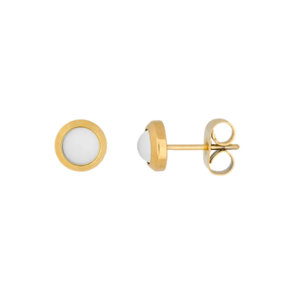 Kleine edelstalen oorstekers met witte steen, matchend bij de iXXXi JEWELRY ringen en charms.