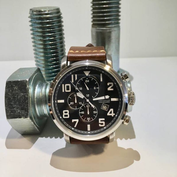 Dit stoere horloge uit de City Cowboy collectie is een echte tijdloze klassieker. Dit horloge combineert de stoere roestvrijstalen kast met een mooie zwarte wijzerplaat en een stijlvolle bruine Italiaanse lederen band. De stad wacht op je. Never too late.