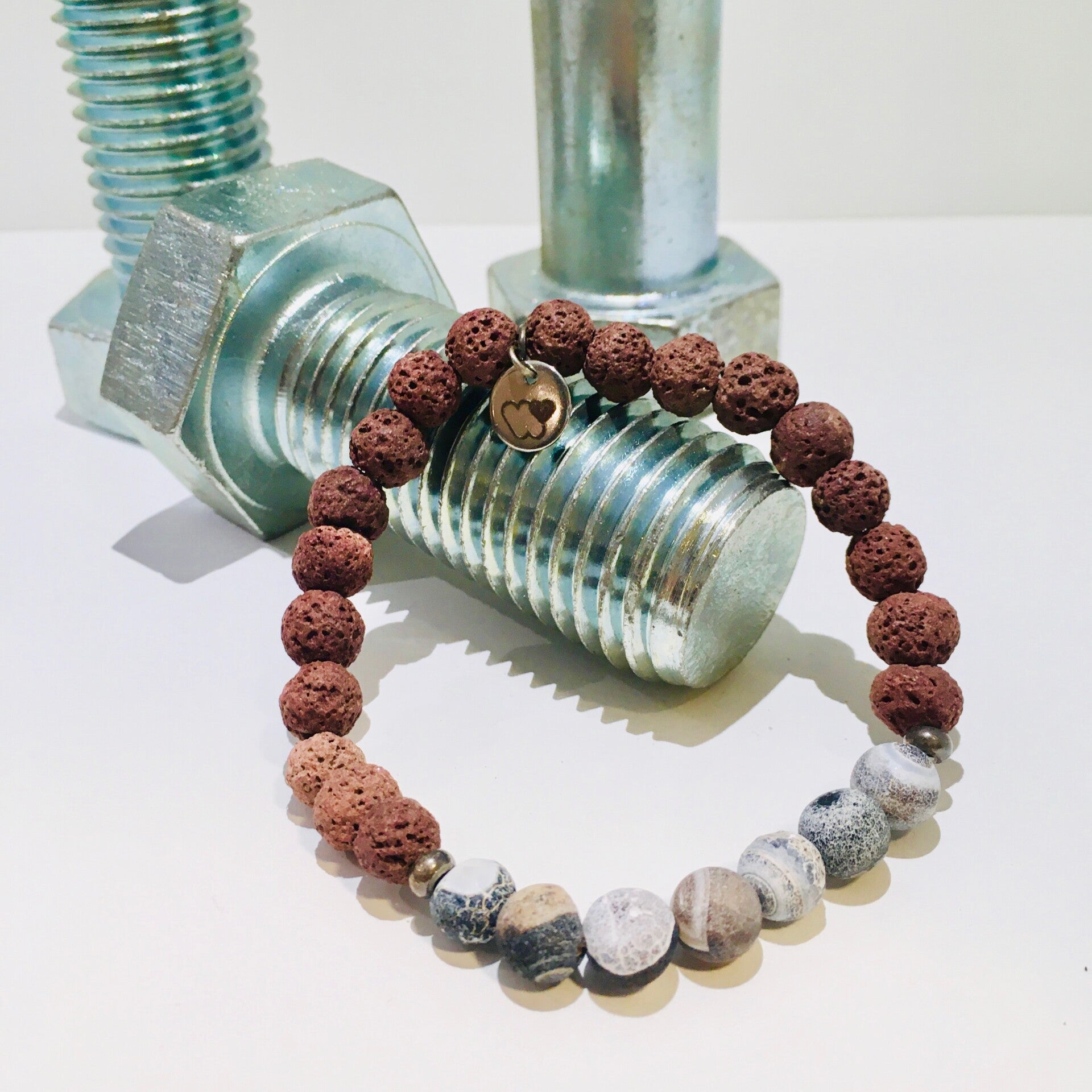 Stoere kralen armband bruine lava steen